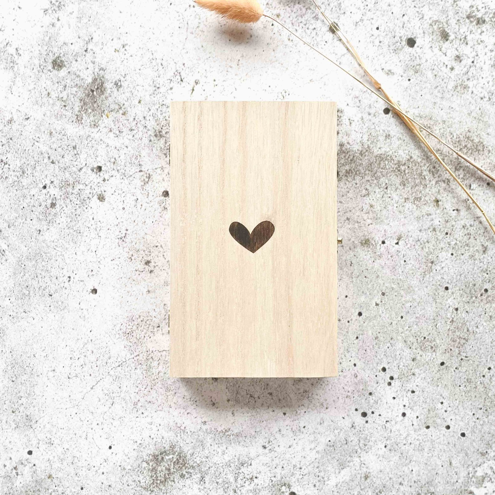 – Houten aankondigingsdoosje (19 CM x B 12 CM x H 3 CM)