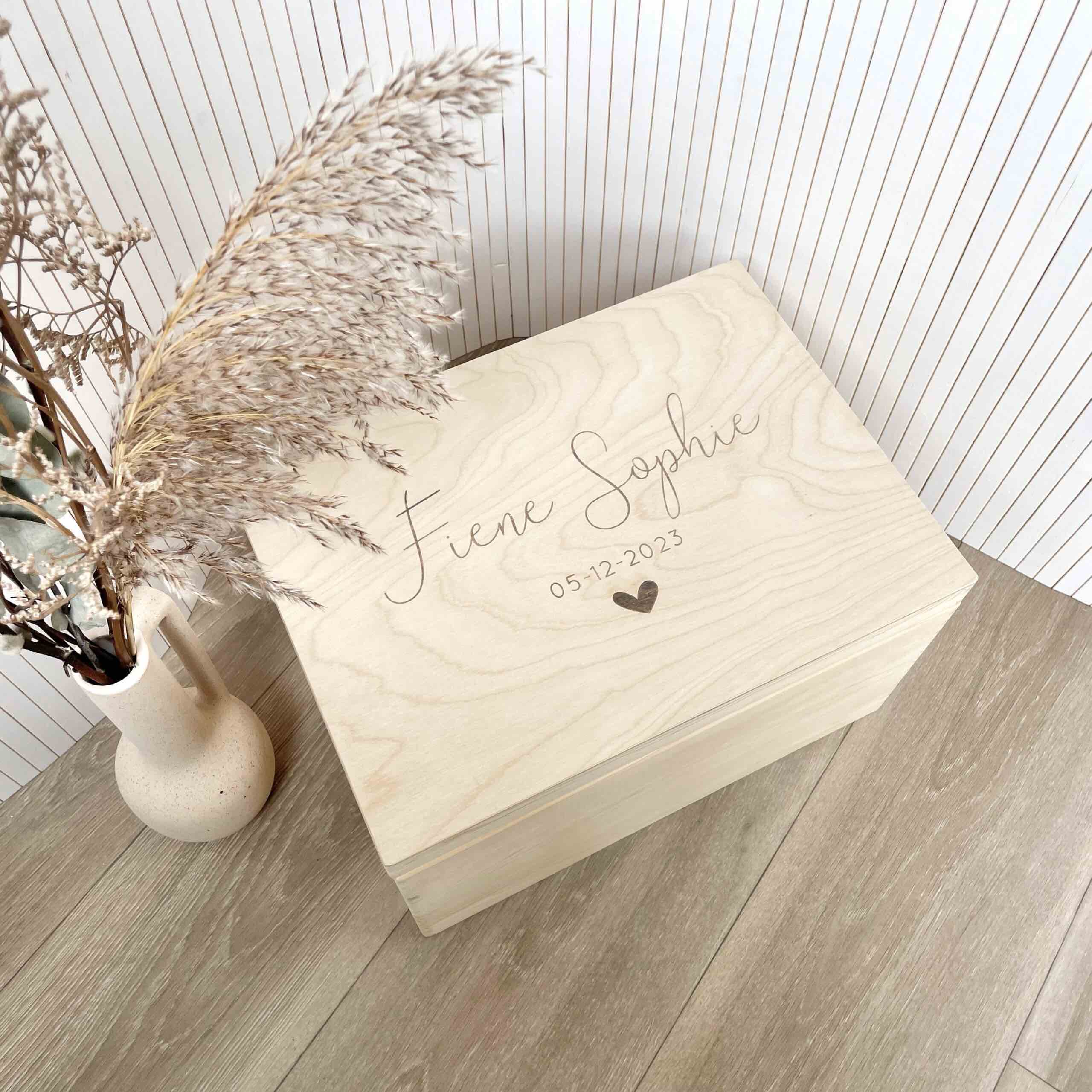 Bewaarkist L – met naam, geboortedatum en hartje