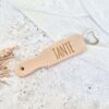 Deze houten koffer van blank hout is gegraveerd met een hartje.