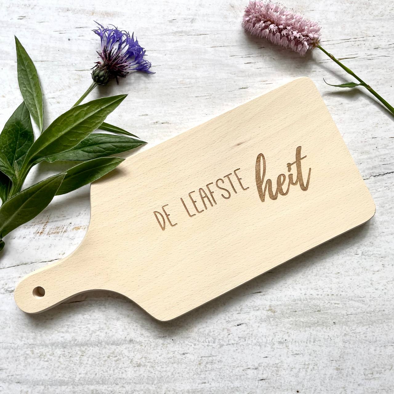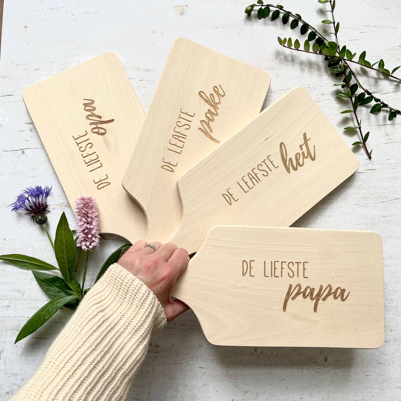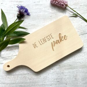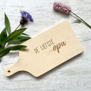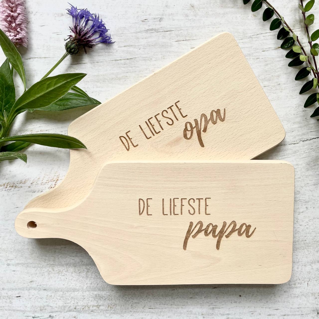 Geef je allerliefste papa, opa, heit of pake deze mooie gegraveerde snijplank! De snijplank is van stevig beukenhout en heeft een formaat van 30,5 x 14 x 1,5 cm. Een perfect cadeau voor Vaderdag!