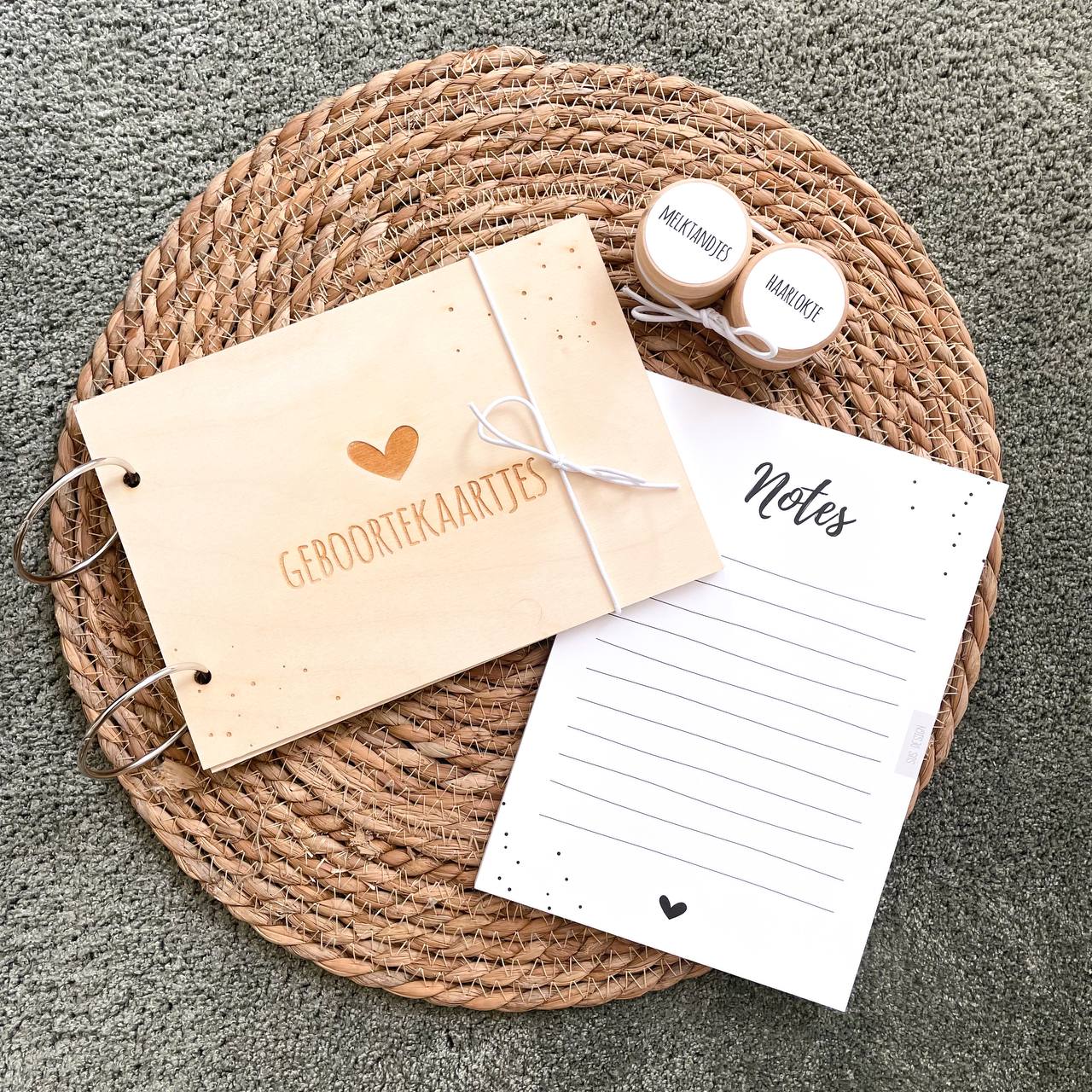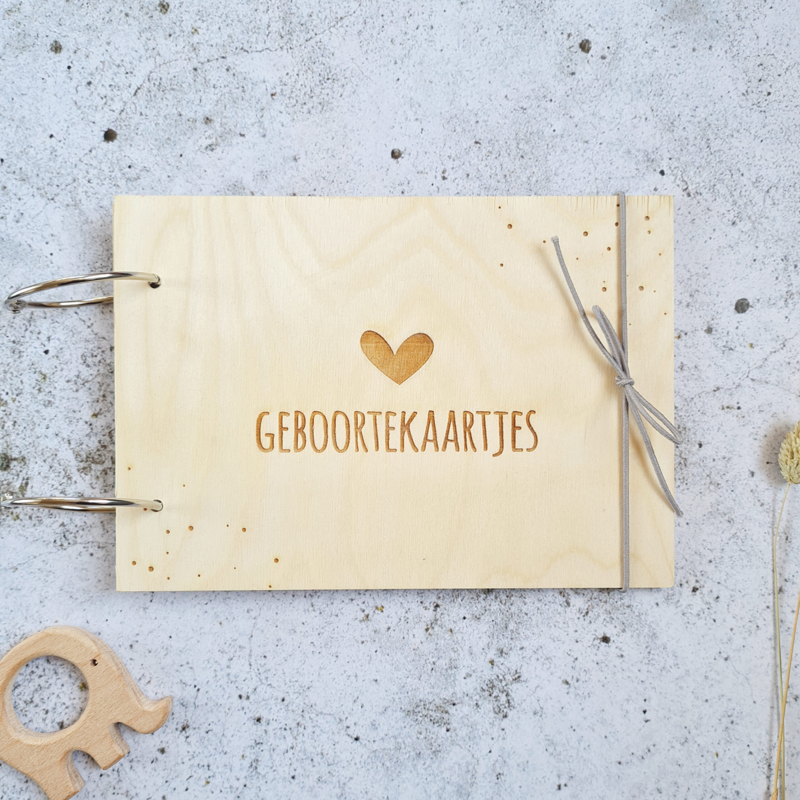 * Bewaarbundel geboortekaarten van hout (A5 formaat)