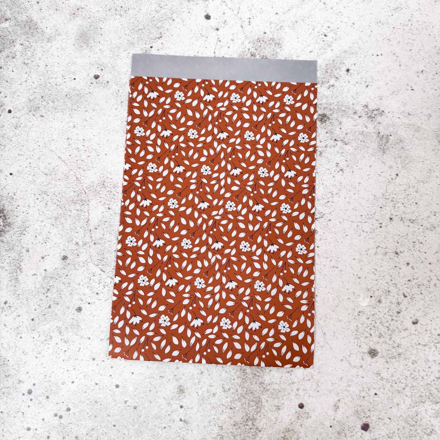 Cadeauzakje – Bruin met witte bloemetjes en blaadjes (5 stuks)