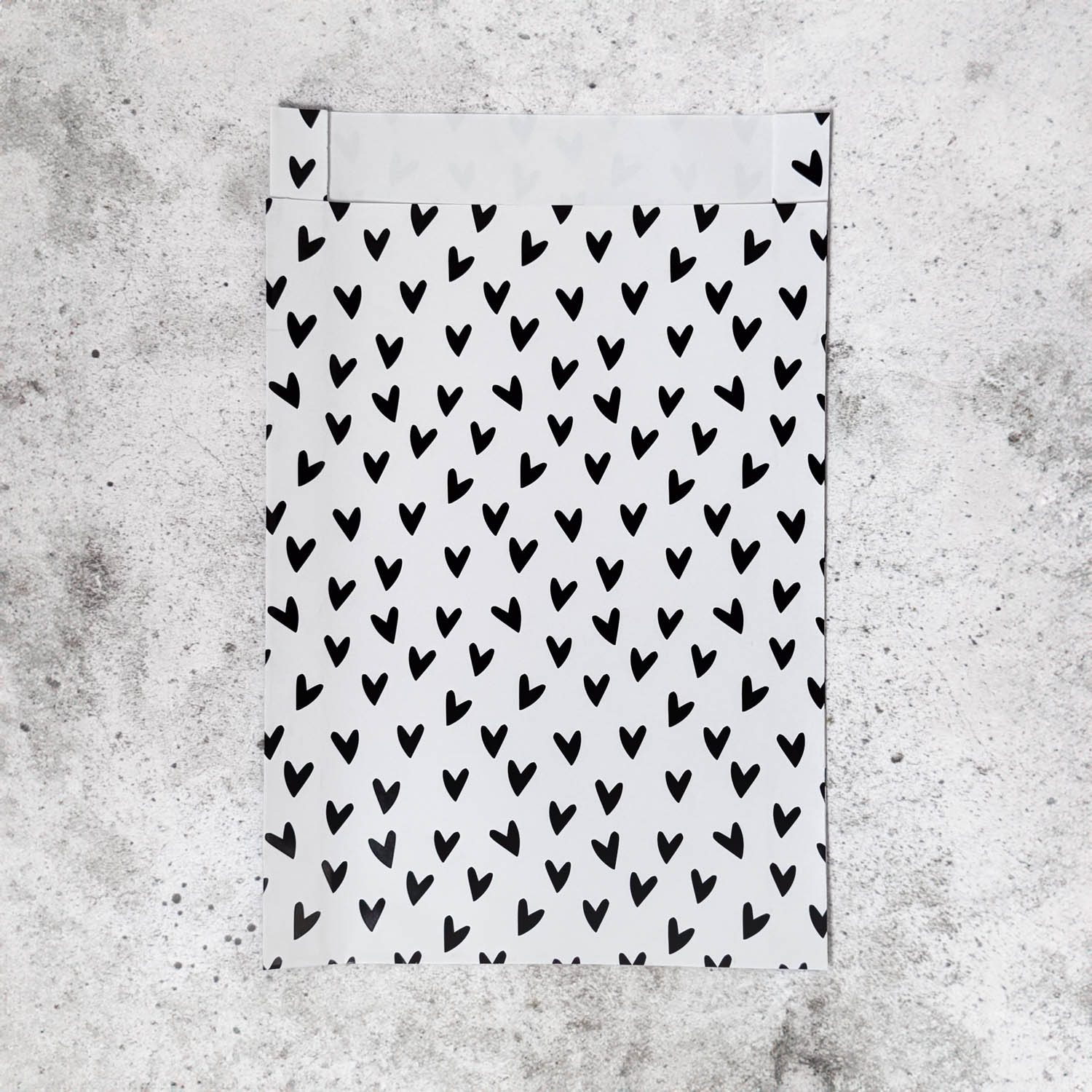 Cadeauzakje L – 27x34cm Hearts duo black and white (5 stuks)