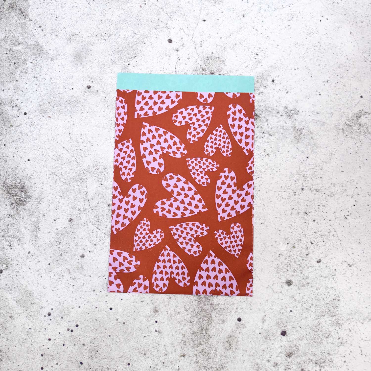 Cadeauzakje – Roest met roze hartjes (5 stuks)
