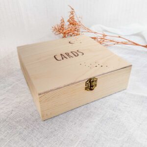 Give your cards a special place by storing them in this wooden keepsake box. It helps you keep your cherished cards organised and protected, so they can be enjoyed and revisited for years to come. Perfect for preserving meaningful memories in one dedicated place.