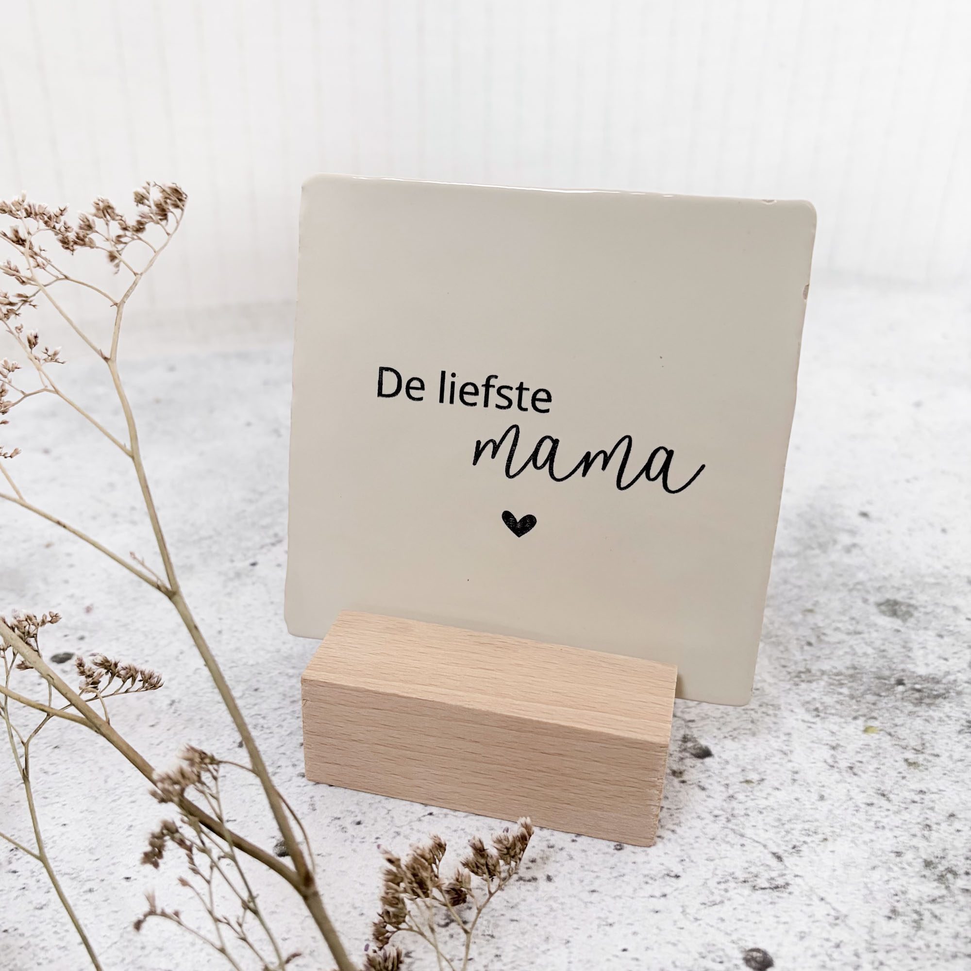 De liefste mama – wit – tegel met gravering