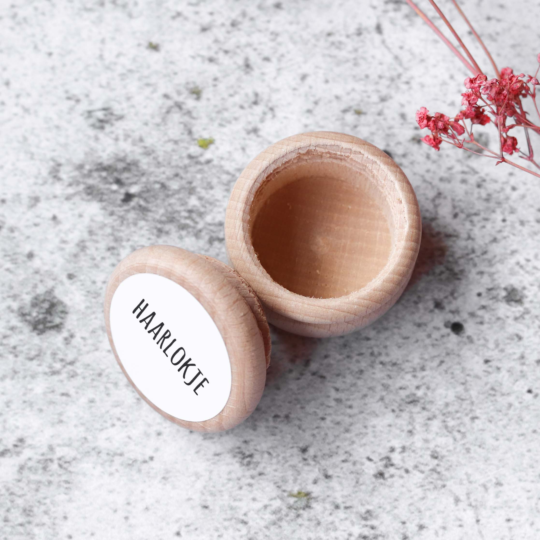 Bewaar een haarlokje van je kindje in dit leuke bewaardoosje van Fien en Feau! Ontzettend leuk voor later. Het doosje is gemaakt van stevig beukenhout, heeft een handige schroefdop en is 40 mm breed en 34 mm hoog. Koop het voor je eigen kindje of geef het weg als (kraam)cadeau!