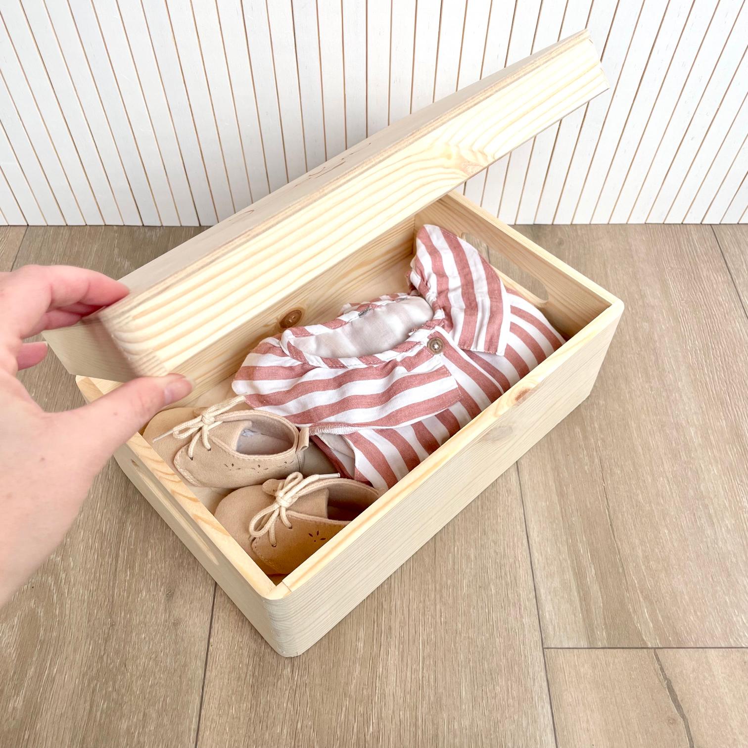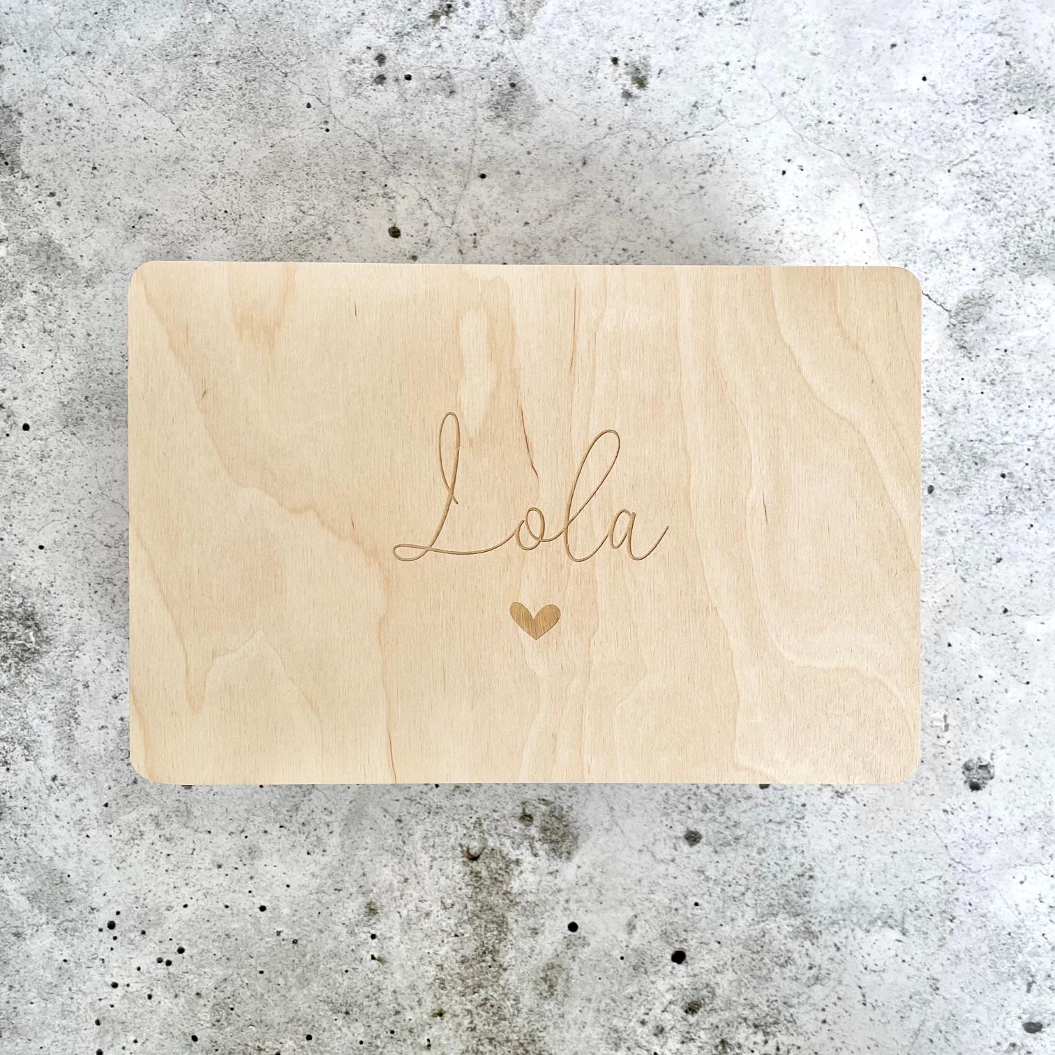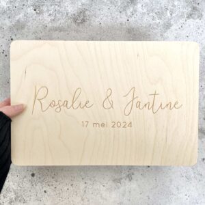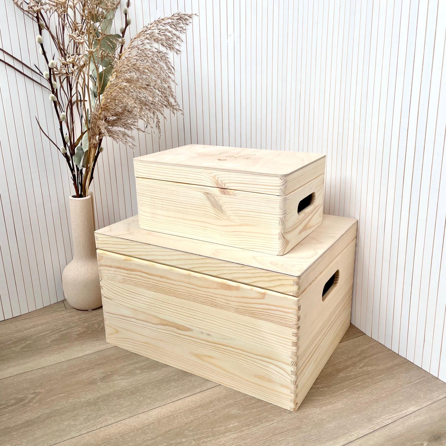 Een mooie plek voor al die fijne herinneringen aan jouw kind is deze houten bewaarkist. Deze kist kan gebruikt worden als geboortekist, maar ook als algemene herinneringskist waar je al je favoriete spulletjes van jouw kind in kunt bewaren. Liever een maatje kleiner? Die hebben we ook! Bekijk deze hier. Als je de bewaarkist wilt personaliseren kan dit! Op deze kist graveren we de opdruk.