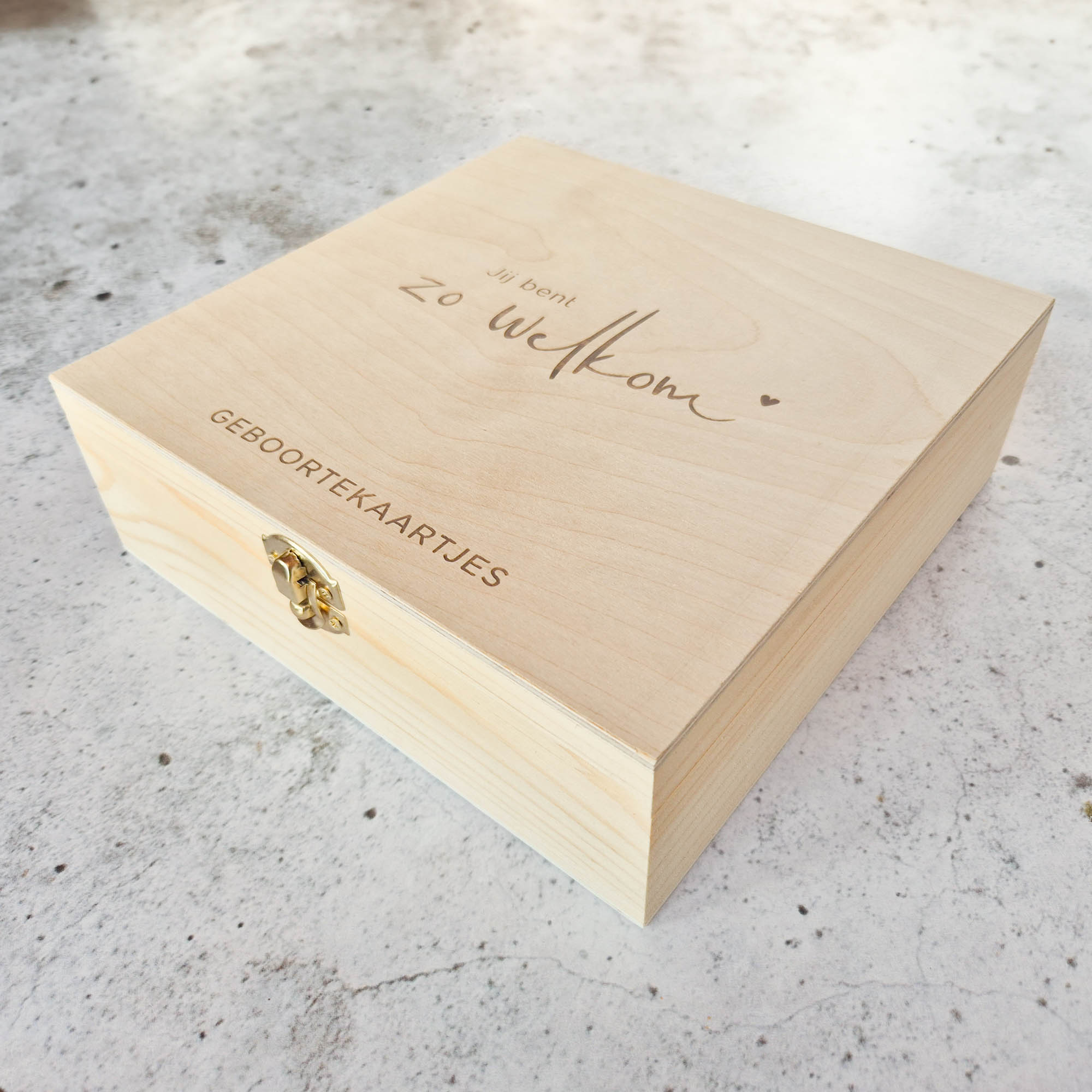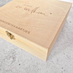 In dit opbergkistje kunnen alle mooie geboortekaartjes bewaard worden.