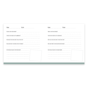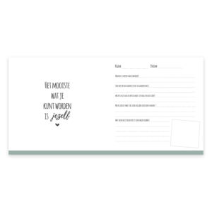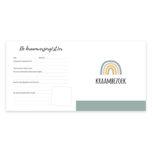 In dit kraambezoekboek is er ook een speciale invulpagina voor de kraamverzorgster. Daarnaast is er op iedere invulpagina ruimte voor een foto van de kleine en het bezoek.