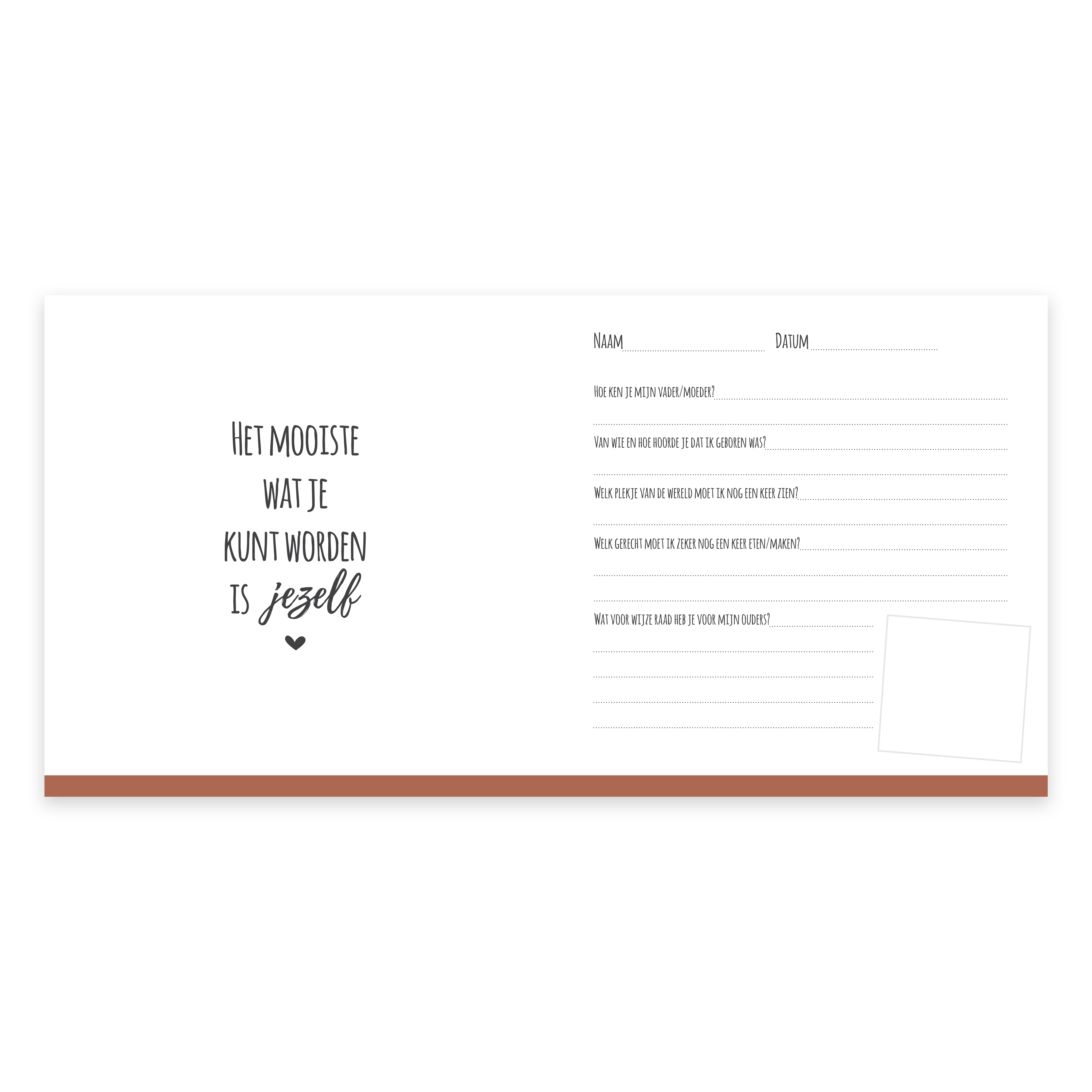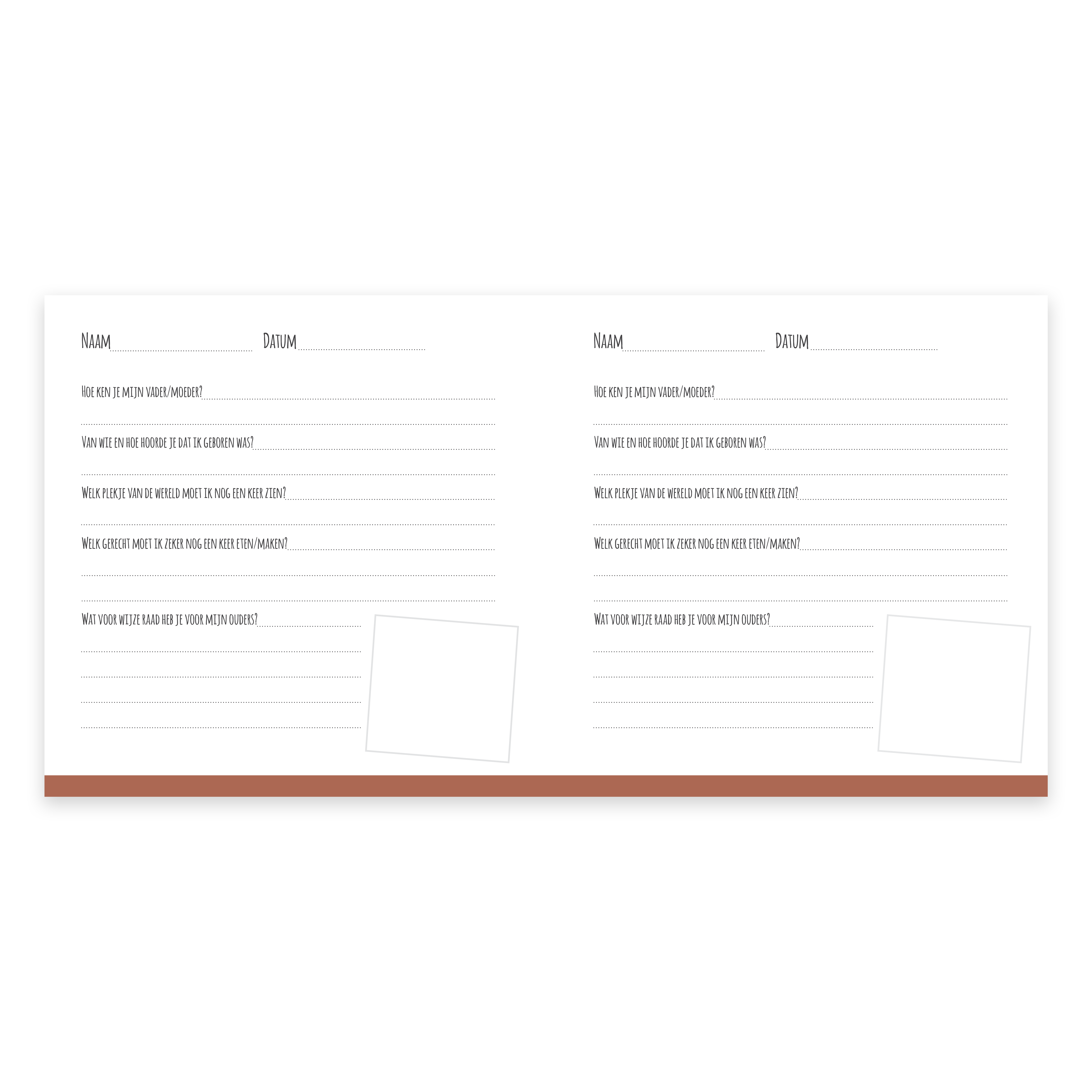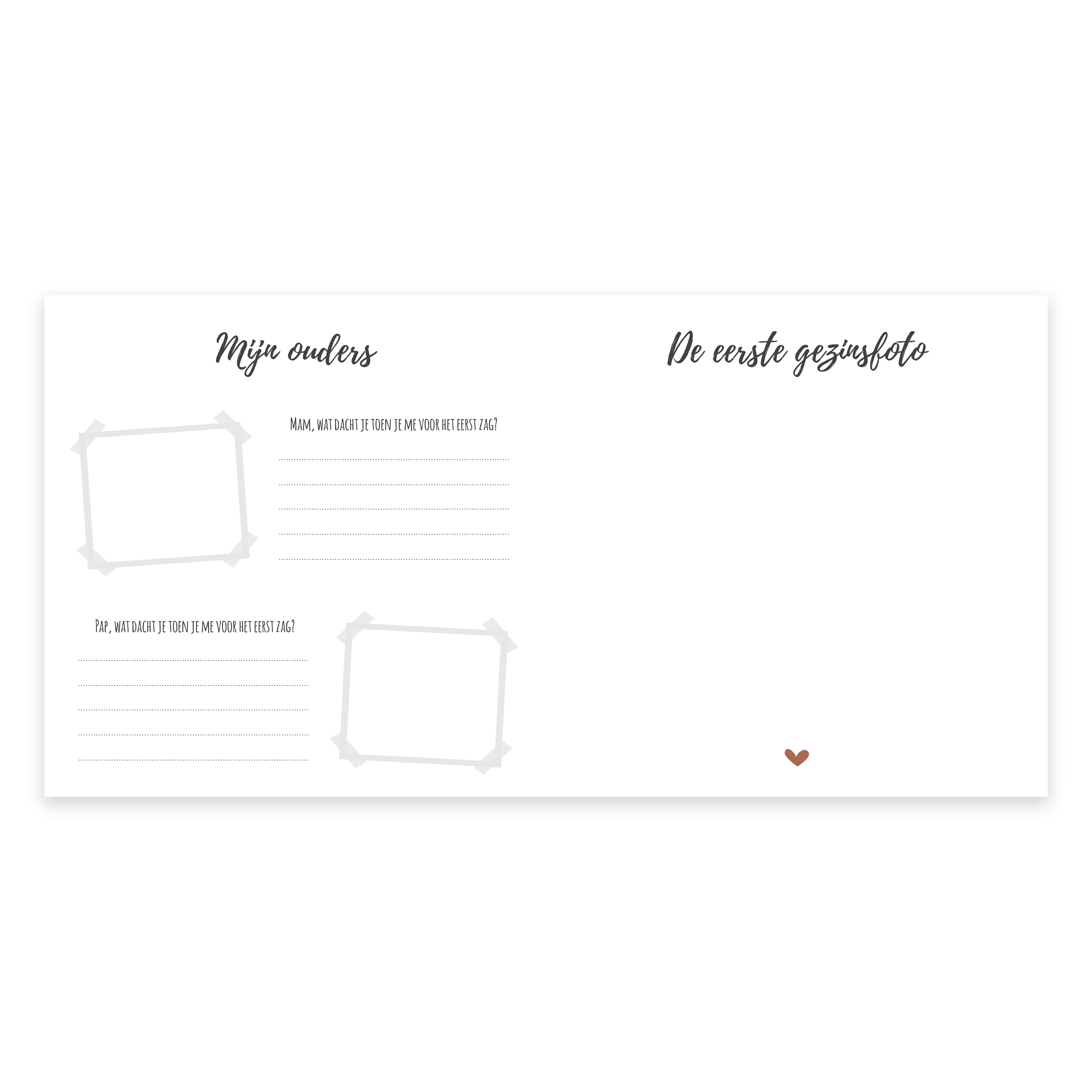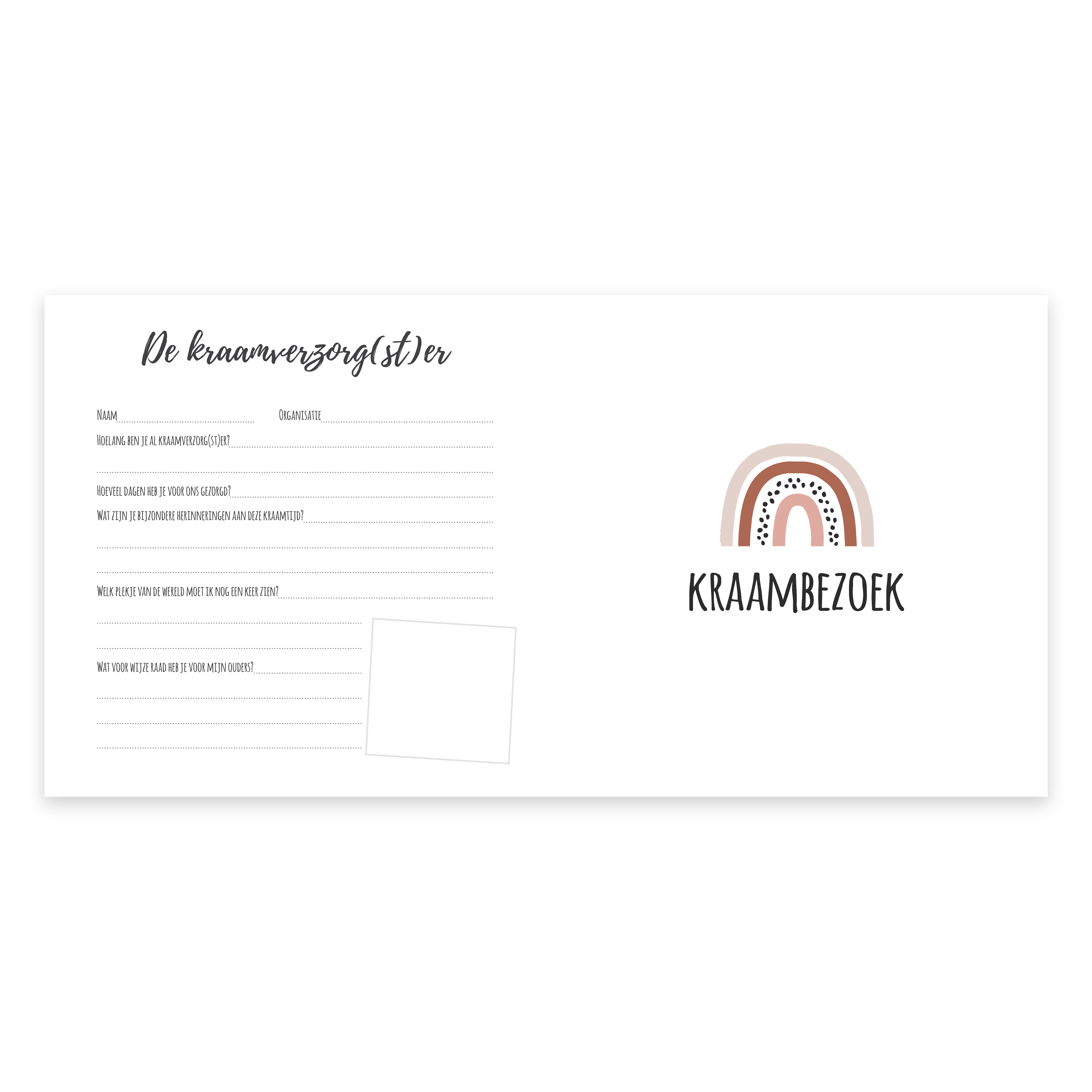In dit kraambezoekboek is er ook een speciale invulpagina voor de kraamverzorgster. Daarnaast is er op iedere invulpagina ruimte voor een foto van de kleine en het bezoek.