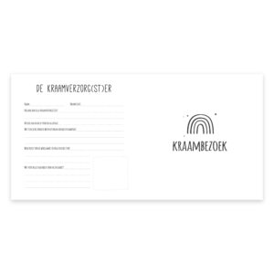 In dit kraambezoekboek is er ook een speciale invulpagina voor de kraamverzorgster. Daarnaast is er op iedere invulpagina ruimte voor een foto van de kleine en het bezoek.