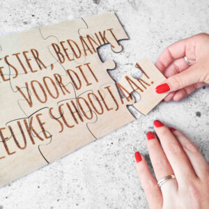 Het einde van het schooljaar nadert, de tijd vliegt! Geef als bedankje deze mooie puzzel cadeau. Leuk om in elkaar te zetten en ontzettend leuk om te bewaren! De puzzel heeft een formaat van een A5 en wordt geleverd in een luxe linnen zakje. Een perfect cadeau voor het einde van het schooljaar!