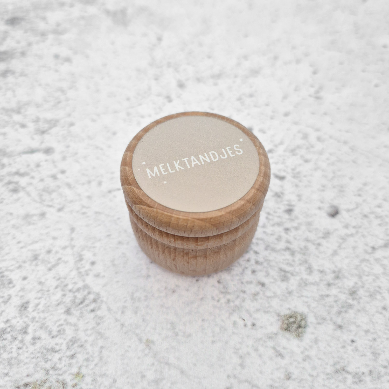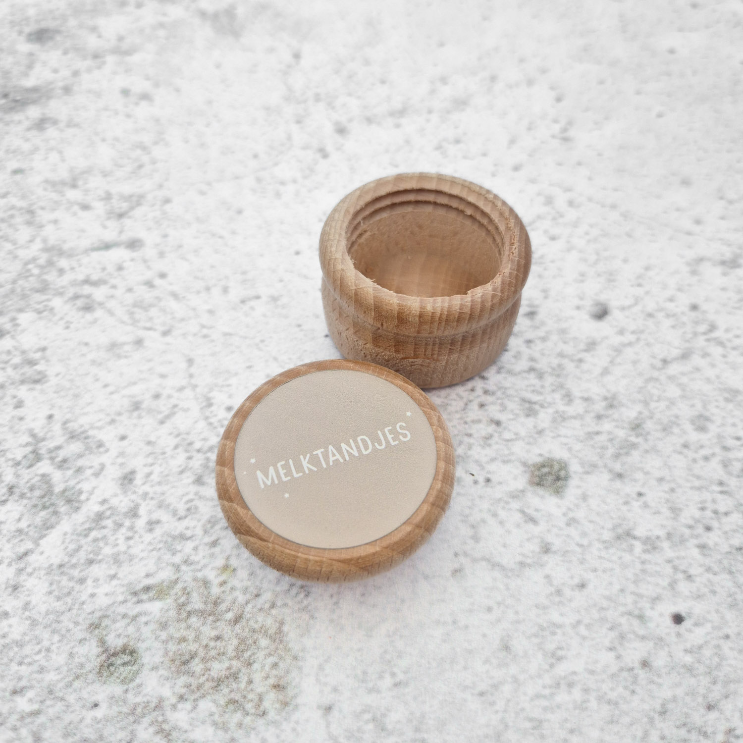 Bewaar de melktandjes in één van onze melktandendoosjes! Dit melktandendoosje is gemaakt van beukenhout en is de perfecte manier om de kostbare melktandjes van je kind veilig te bewaren. Het heeft een handige schroefdop en een compact formaat van 4 cm in diameter en een hoogte van 3,4 cm. Zo kun je het dus gemakkelijk opbergen. Bovendien zorgt de hoogwaardige sticker met sterke plakkracht ervoor dat de opdruk langdurig mooi blijft, zelfs na veelvuldig gebruik.