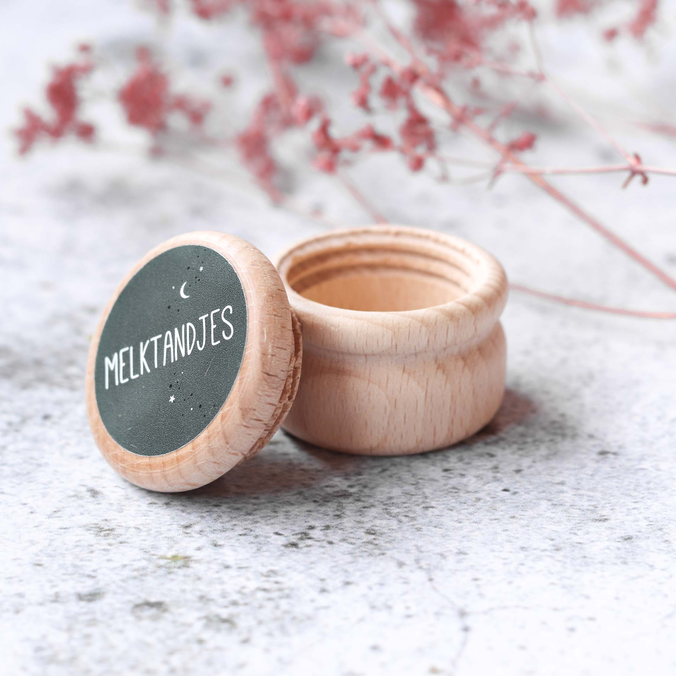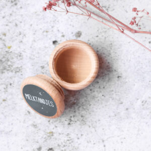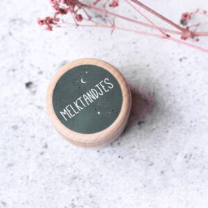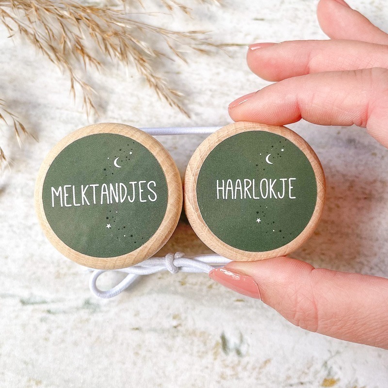 Wil je graag de melktandjes en het eerste haarlokje van je kindje bewaren? Met deze leuke set van twee houten bewaardoosjes kun je het op een leuke, handige manier koesteren! De doosjes zijn van hout en bedrukt met een sticker met de tekst ‘melktandjes’ en ‘haarlokje’.