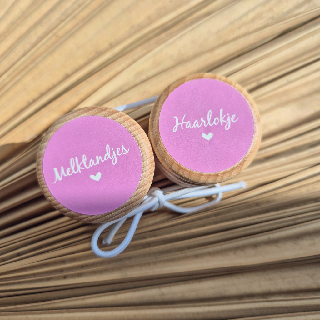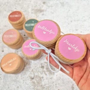 Wil je graag de melktandjes en het eerste haarlokje van je kindje bewaren? Met deze leuke set van twee houten bewaardoosjes kun je het op een leuke, handige manier koesteren! De doosjes zijn van hout en bedrukt met een sticker met de tekst ‘melktandjes’ en ‘haarlokje’.