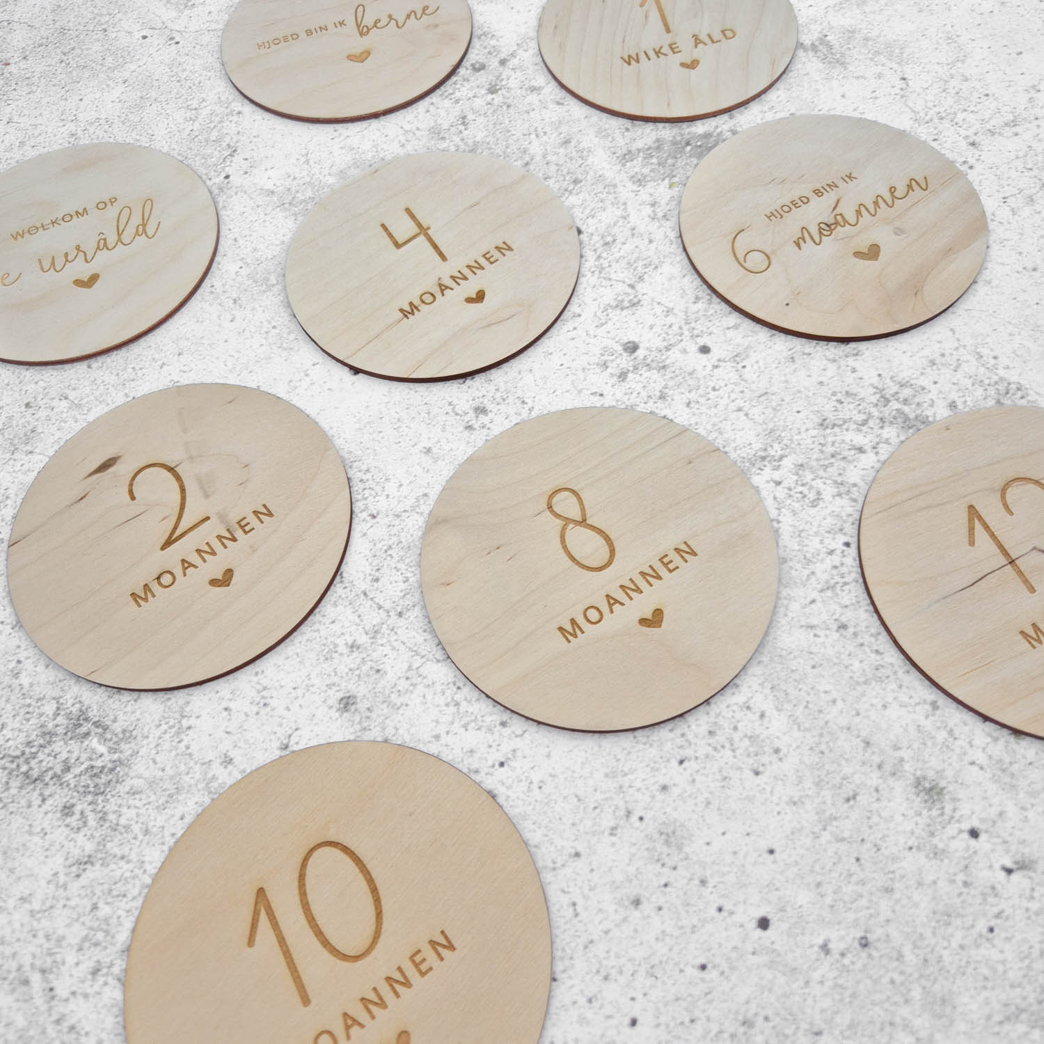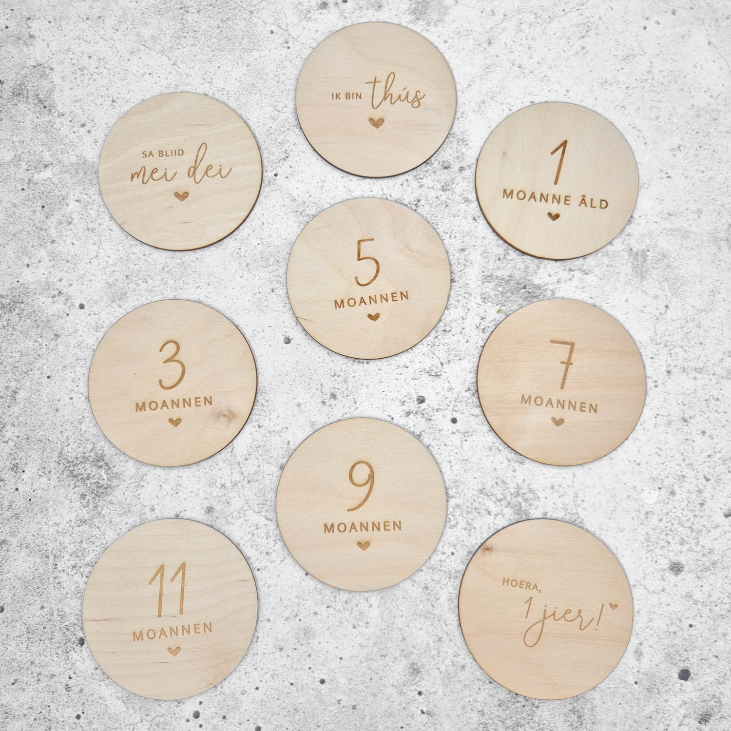 Leg de tijd van je kindje vast met deze mooie mijlpaalcirkels van Fien & Feau. De cirkels zijn 10cm en dubbelzijdig gegraveerd.