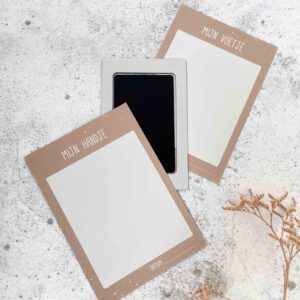 Leg een blijvende herinnering vast met deze set van twee kaarten: één voor een handafdruk en één voor een voetafdruk. De meegeleverde inktpad is geschikt voor éénmalig gebruik en biedt ruimte voor beide afdrukken. Met deze inktpad maak je eenvoudig een hand- en voetafdruk zonder dat de huid van je kindje in contact komt met de inkt. Dat betekent: geen vieze handjes of voetjes, en geen gedoe.