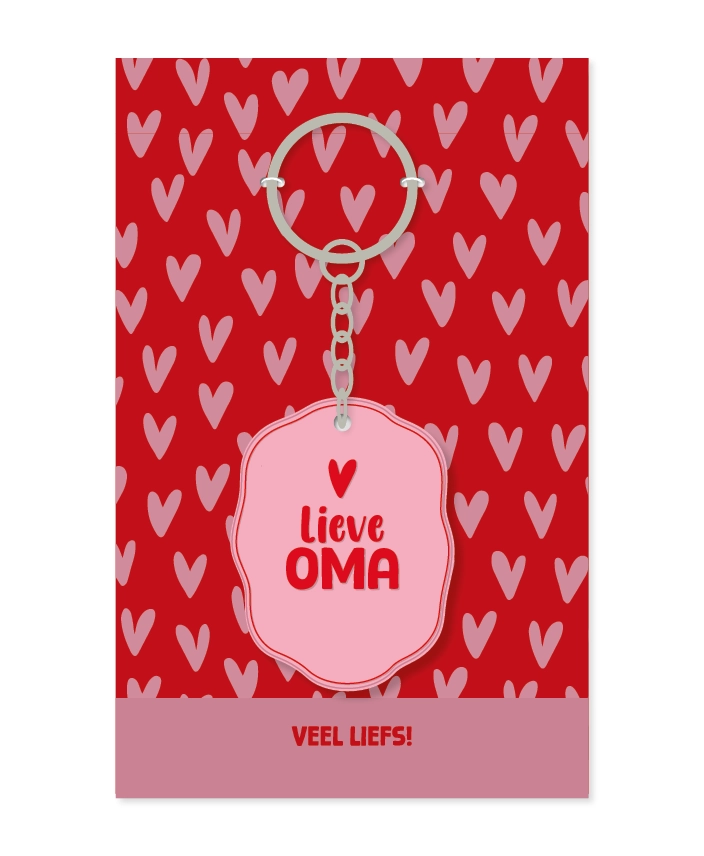 Laat oma zien dat ze bijzonder is met deze PVC 2D sleutelhanger in een ovale vorm met sierlijke kader. Compleet met kaartje met hartjes ‘Veel liefs’. Perfect voor verjaardag, bedankje of zomaar een attentie. Praktisch, persoonlijk en dagelijks te gebruiken – een klein gebaar dat groots voelt!