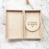 – Houten aankondigingsdoosje (19 CM x B 12 CM x H 3 CM)