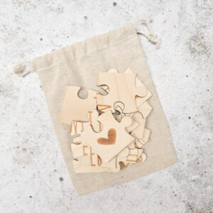 Vraag je getuige op een unieke manier voor jullie bruiloft met deze mooie houten puzzel! De puzzel wordt geleverd in een linnen zakje zodat je het op een leuke manier kunt weggeven aan de getuige to be. De puzzel is gegraveerd met de tekst ‘wil je mijn getuige zijn?’. Laat hem of haar de puzzel in elkaar zetten en zie een glimlach verschijnen op zijn of haar gezicht!